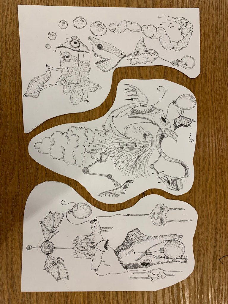Me! For my piece based on me I created some crazy fine-liner drawing to show my imagination and that I have a passion for all things weird and cool .